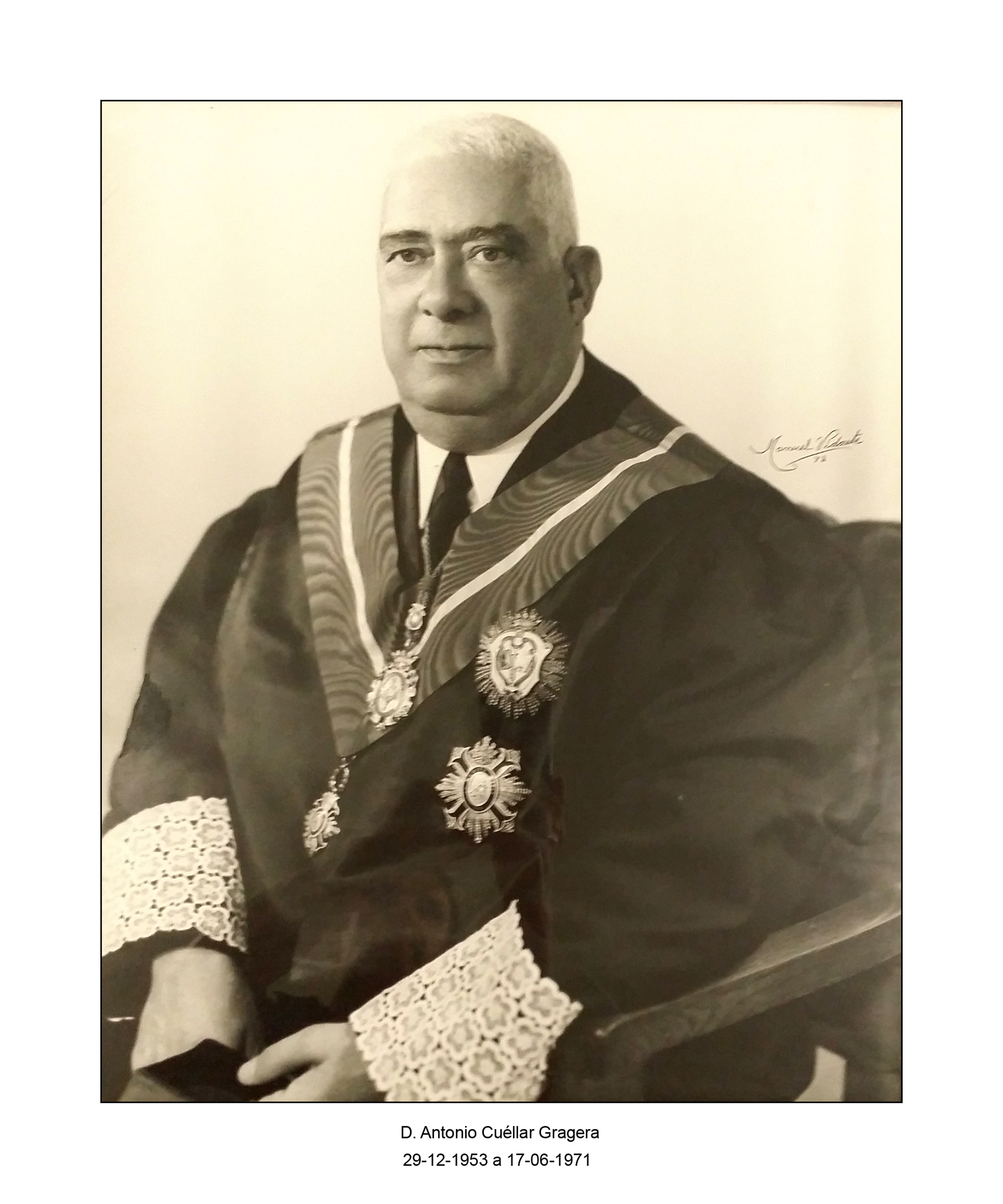 El excelentísimo señor Don Antonio Cuéllar Gragera nació en Badajoz en el año, 1901 y se graduó en la Facultad de Derecho de la Universidad de Madrid, revalidando el título en la Facultad de Derecho de la Universidad de Coimbra.