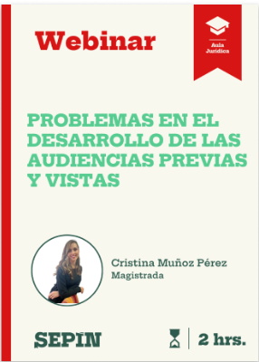 El lunes 5 de mayo a las 17:00, Cristina Muñoz Pérez, Magistrada del Juzgado de Primera Instancia nº 4 de Benidorm, estudiará de una forma práctica los problemas en el desarrollo de las audiencias previas y vistas.