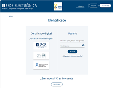 Puede acceder mediante certificado electrónico si dispone de él, o pulsar el botón Regístrate para obtener un usuario y contraseña.